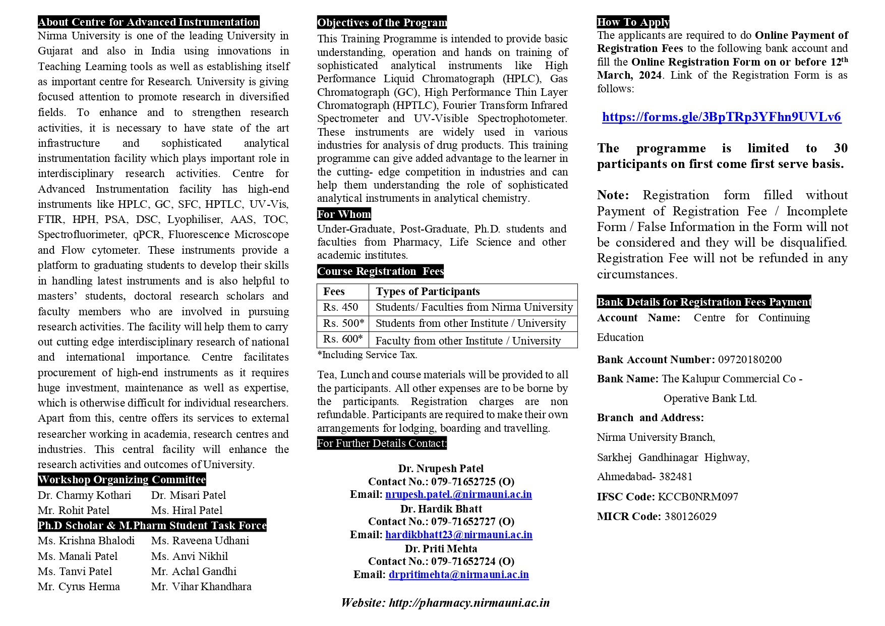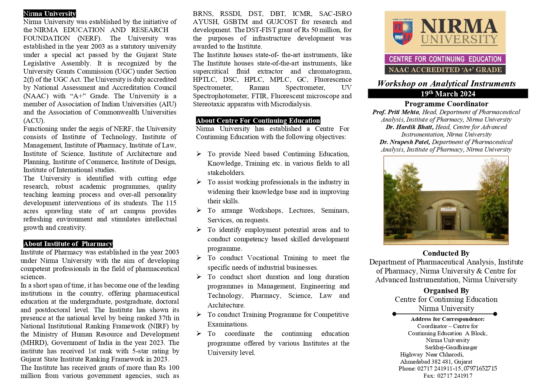 Workshop on Analytical Instruments - Institute of Pharmacy