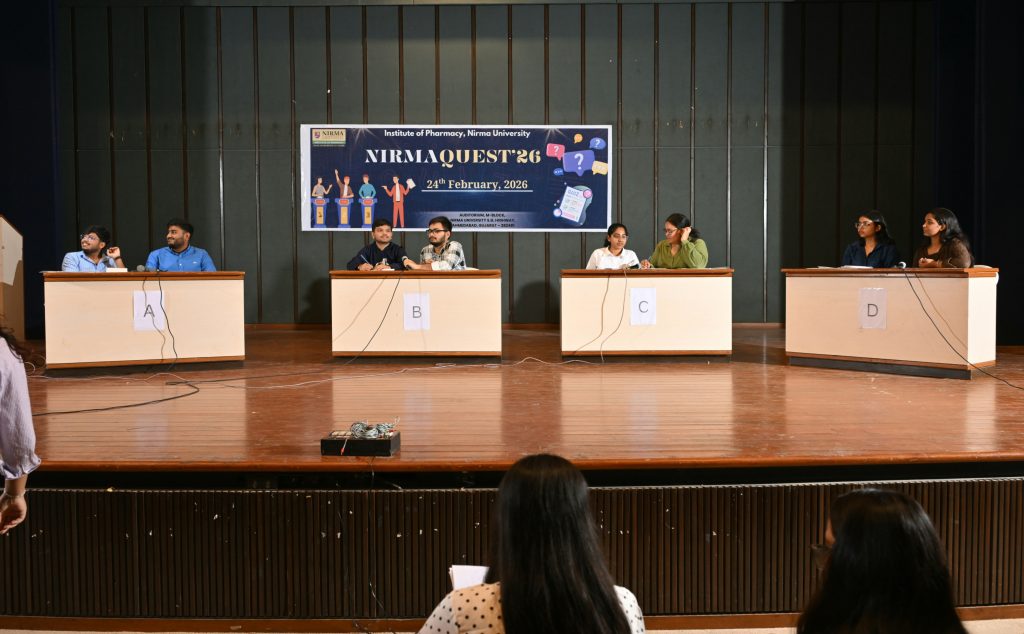 The Institute of Pharmacy, Nirma University proudly hosted NirmaQuest 2026 on February 24, 2026 — a prestigious intercollegiate quiz competition that brought together bright minds from Pharmacy and various academic disciplines across Ahmedabad and Gandhinagar.